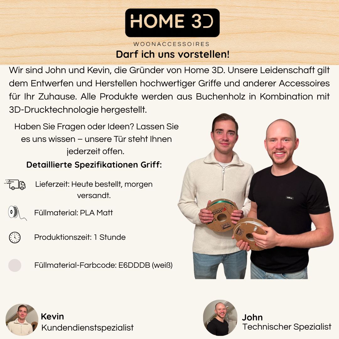 Sie suchen nach dem perfekten Schliff für Ihre Küche, Ihren Schrank oder Ihre Möbel? Dann ist der Home 3D Griff genau das Richtige für Sie! Der Griff aus Buchenholz ist genau das, was Sie brauchen! Die Griffe sind in verschiedenen Größen erhältlich und werden in den Niederlanden hergestellt. Dieses stilvolle und langlebige Produkt ist perfekt für jeden Raum. Inklusive Schrauben für eine einfache Montage. Verleihen Sie Ihrem Zimmer mit diesem Griff einen Hauch von Klasse!